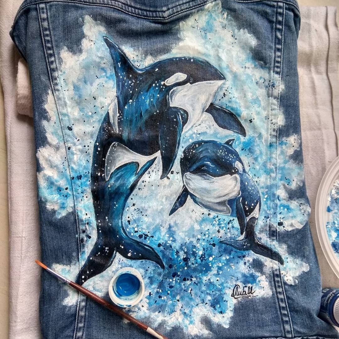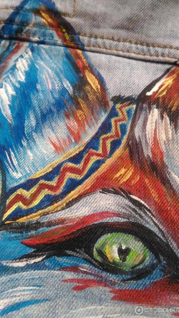 ![Роспись джинс акриловыми красками]()
