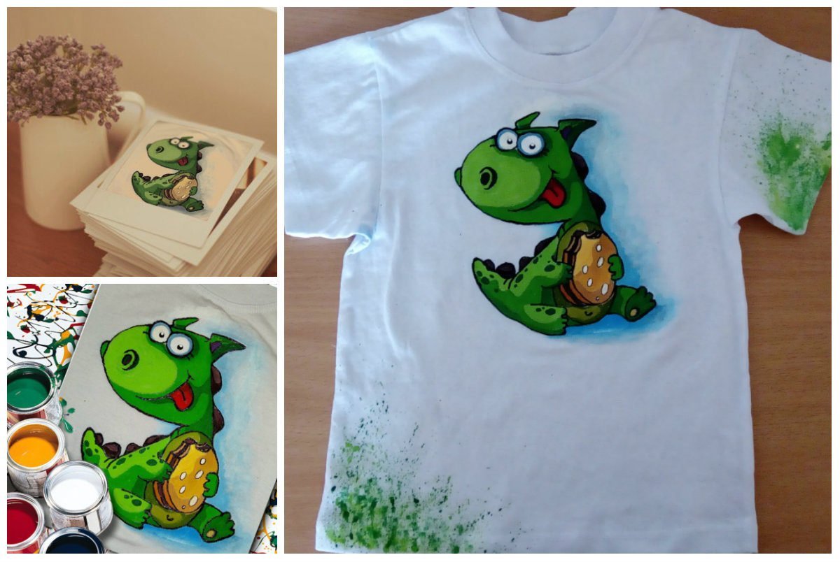 ![Рисование на футболках акриловыми красками]()