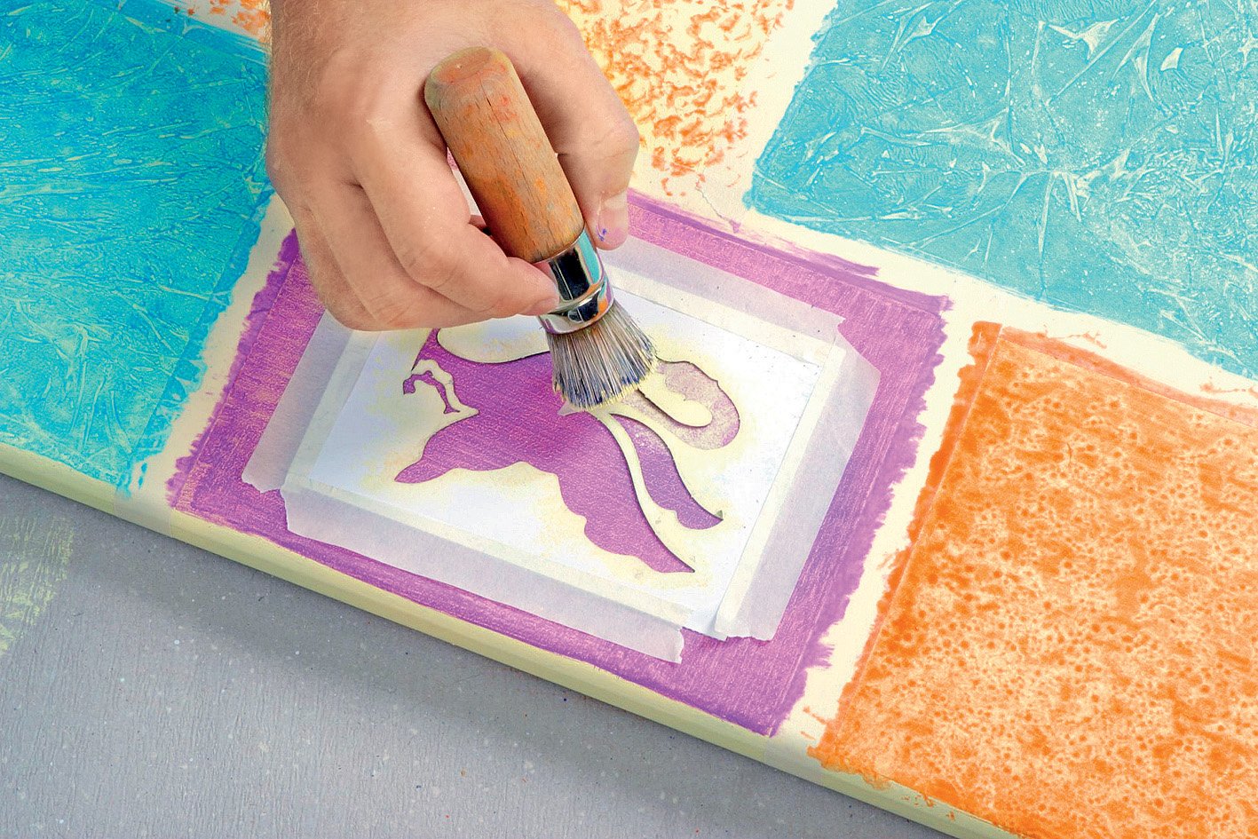 ![Покрытие холста текстурным гелем]()