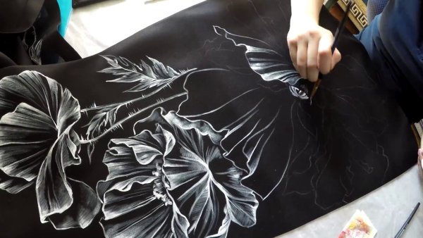 ![Роспись на черной ткани]()