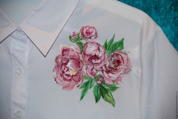 ![Цветы на футболке акриловыми красками]()