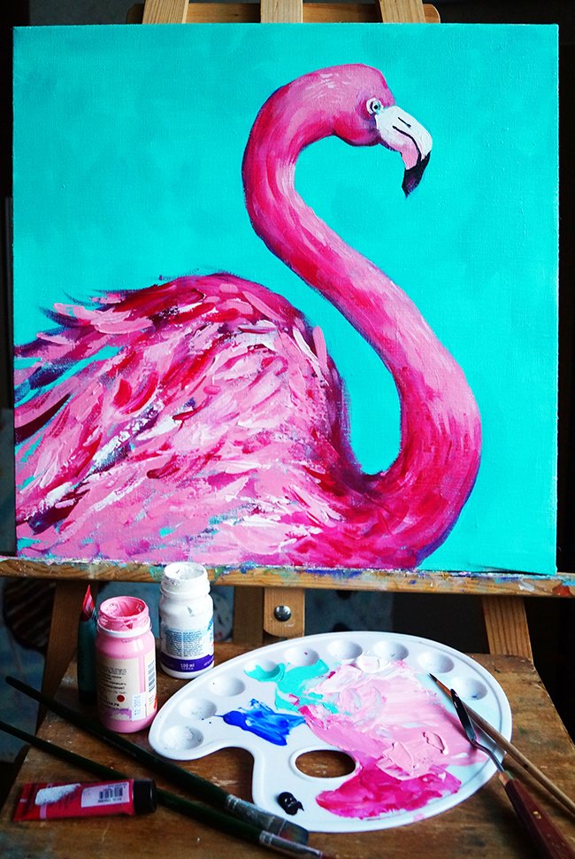 Фламинго красками для детей