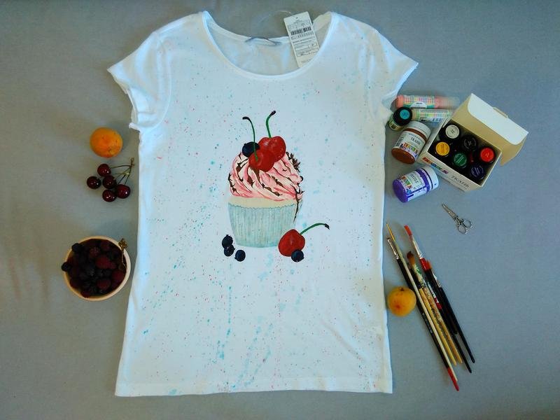 Рисунки на белой футболке акриловыми красками
