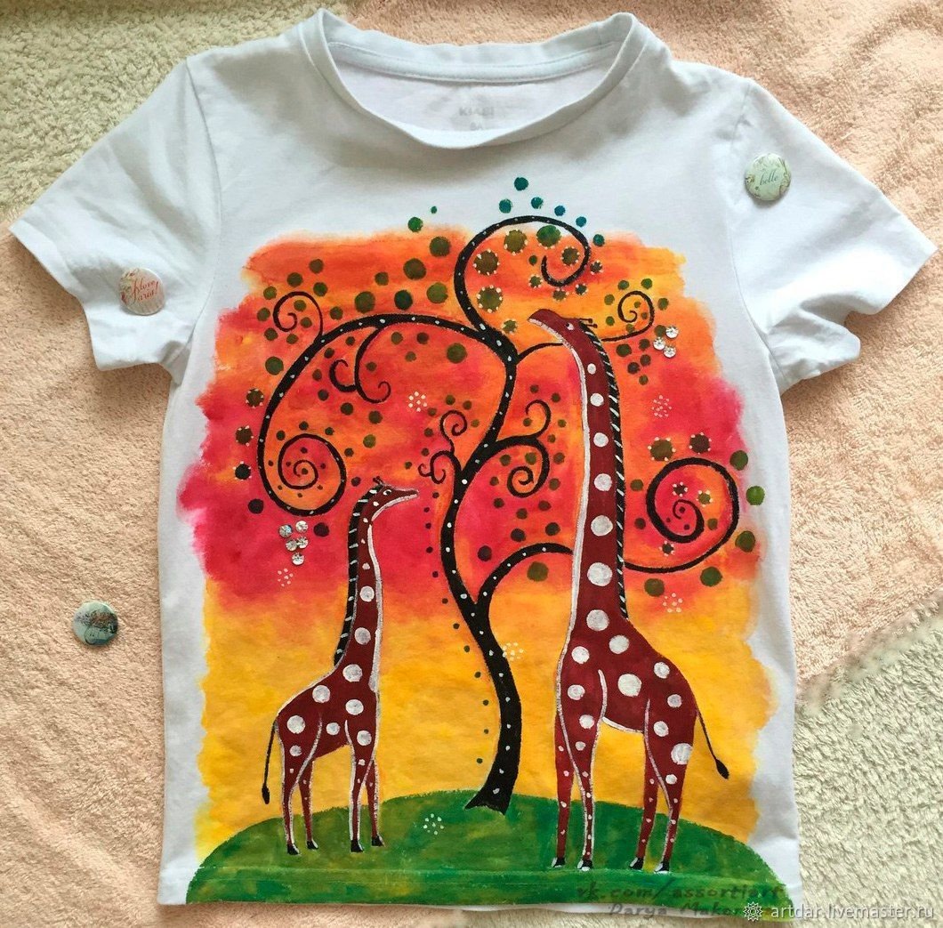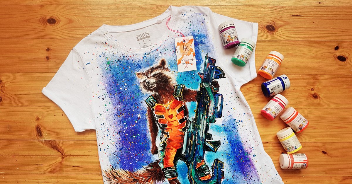 ![Кастомные футболки акриловыми красками]()