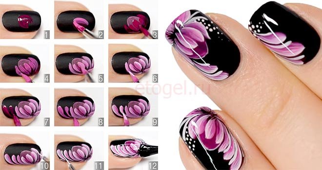 ![Рисунки на ногтях акриловыми красками пошагово]()