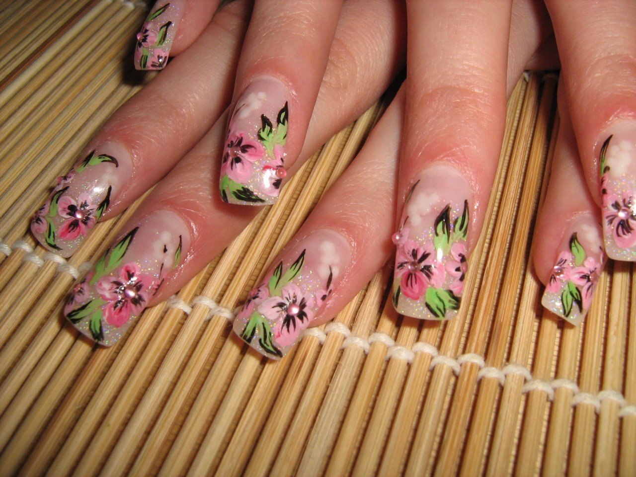 Цветы на ногтях акриловыми красками