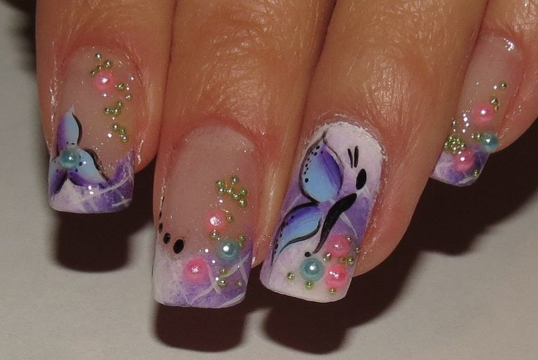 Маникюр со цветочками и с бабочками