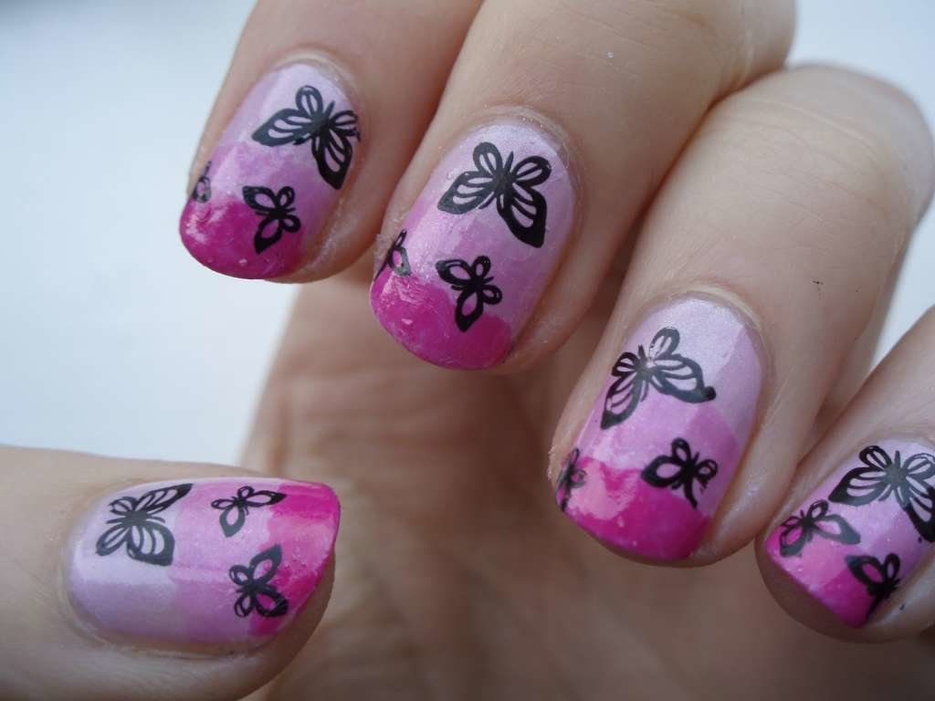 Рисунок бабочки на ногтях