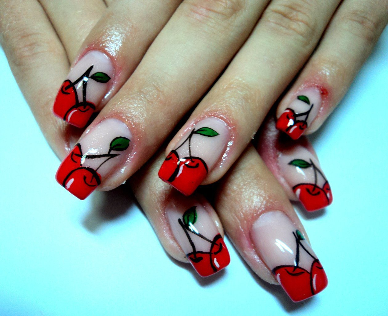 ![Ногти с вишенками]()