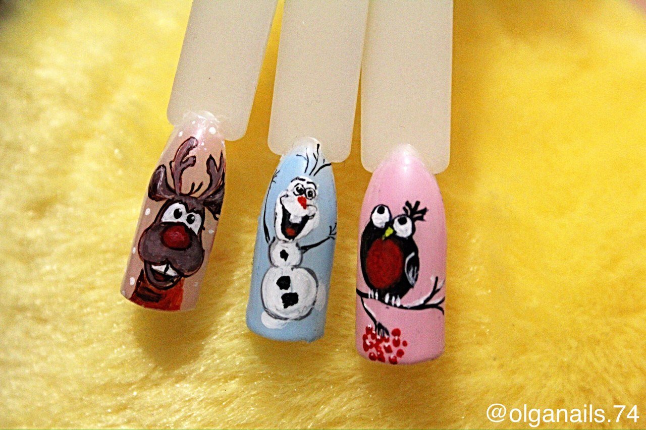 Новогодние мультяшки на ногтях