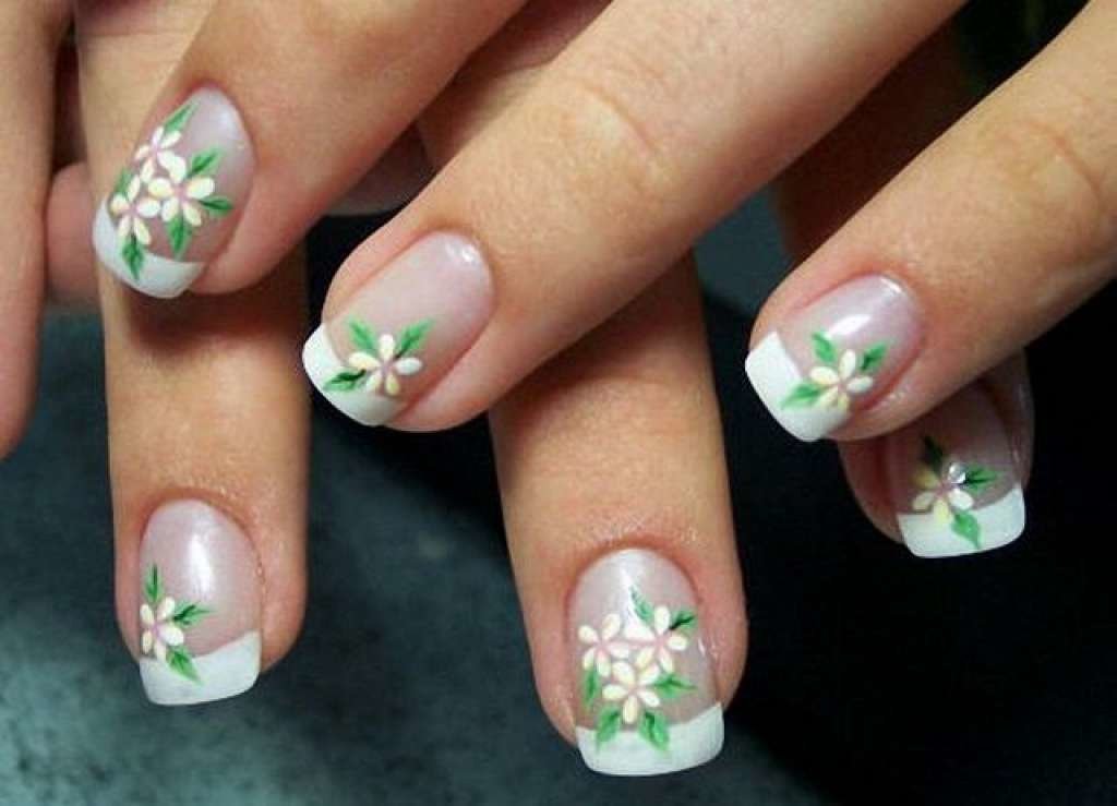 Френч маникюр с цветами и бабочками