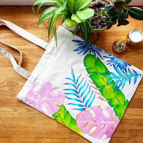 Роспись сумки шоппера акриловыми красками