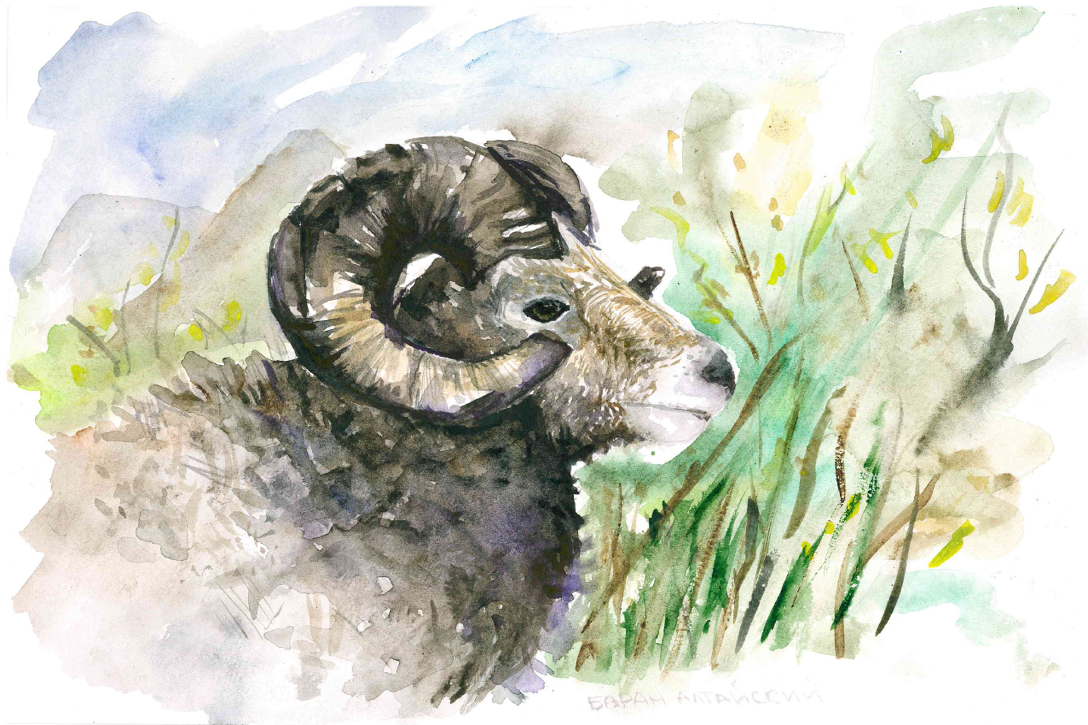 ![Баран акварель]()