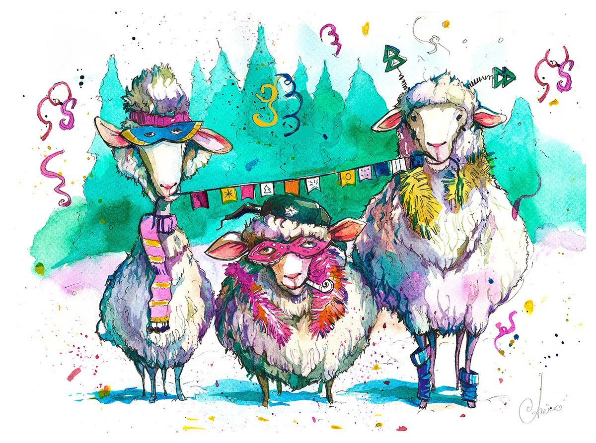 ![Овца иллюстрация акварель]()