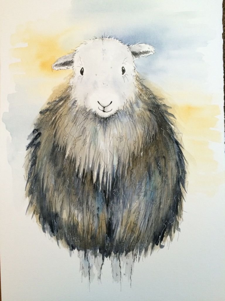 ![Рисунок овцы акварелью]()