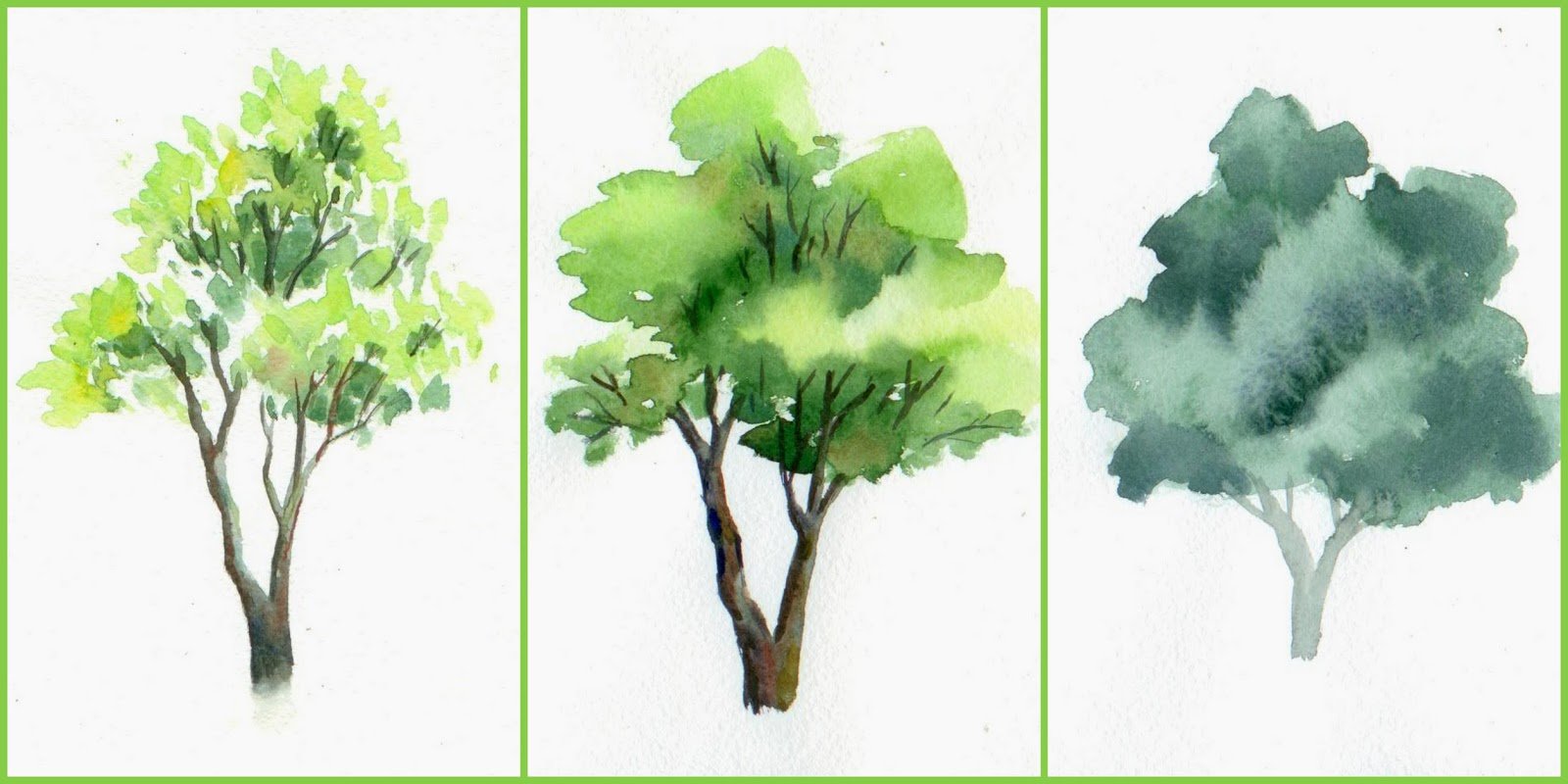 Деревья акварелью поэтапно