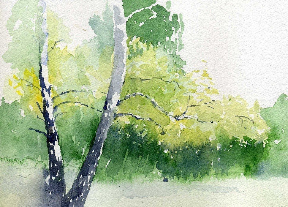 ![Этюды деревьев акварелью пленэр береза]()