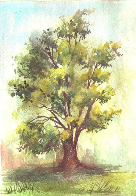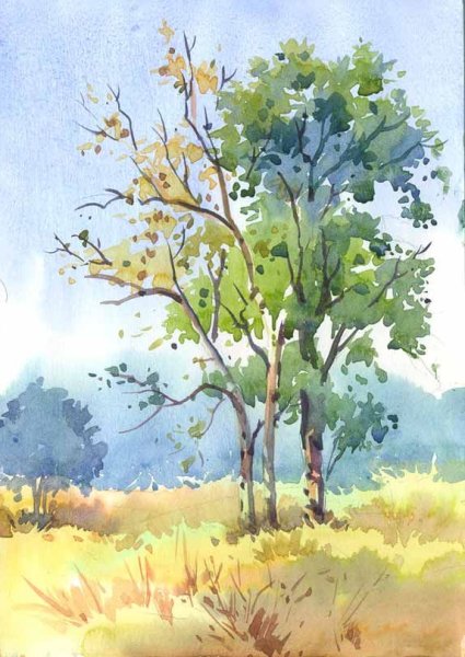 Рисование деревьев акварелью