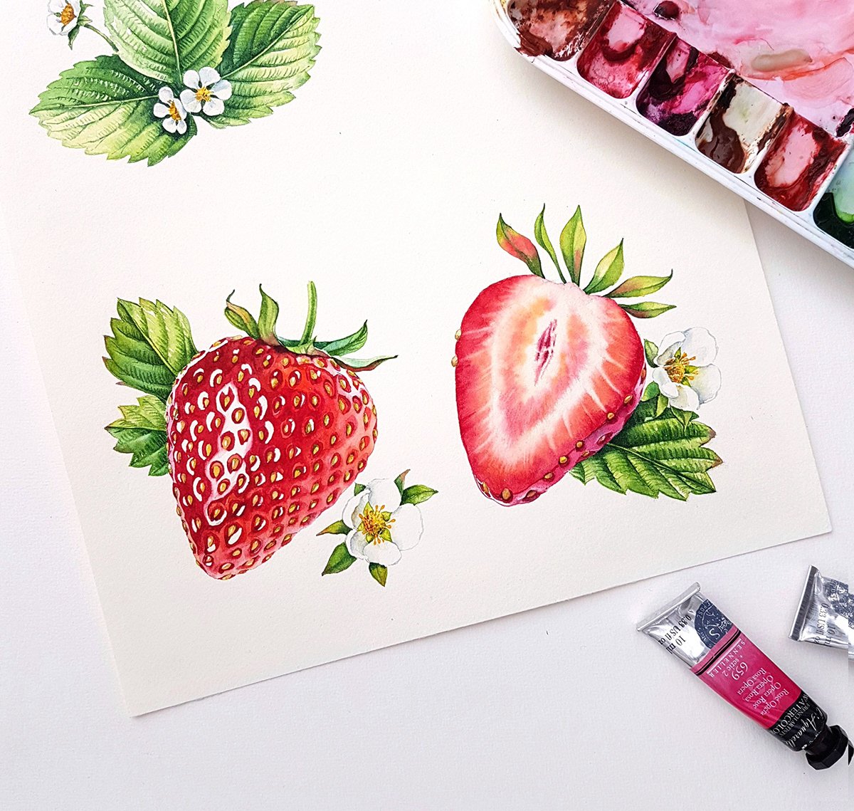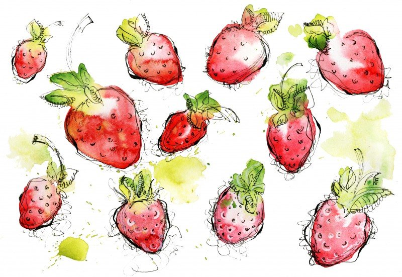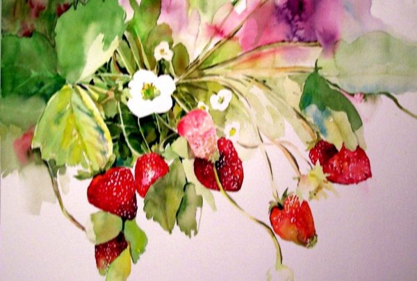 Представляю вам потрясающий рисунок акварелью с изображением земляники. Этот яркий и сочный плод, переданный на бумаге с помощью акварельных красок, словно оживает и привлекает взгляд своей естественной красотой. Каждая ягода детально проработана с использованием разных оттенков красного и зеленого, создавая ощущение объемности и текстуры. Нежные переходы цветов и игра света добавляют этому рисунку особую глубину и реалистичность. Земляника на рисунке выглядит так аппетитно, что хочется сразу же поскорее попробовать этот сладкий и ароматный фрукт. Рисунок акварелью с изображением земляники станет отличным украшением интерьера или подарком для любителей природы и изобразительного искусства.