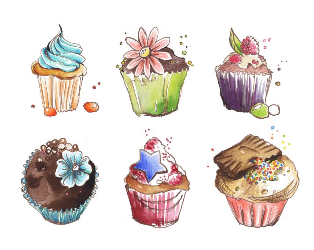 ![Капкейки нарисованные]()