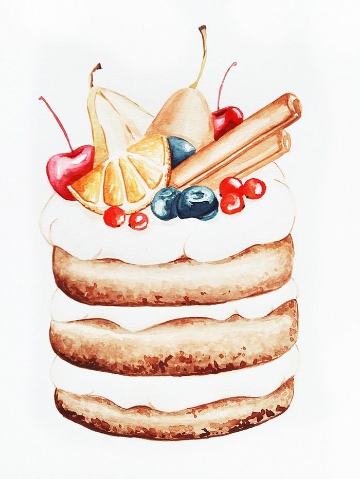 ![Торт рисунок акварелью]()