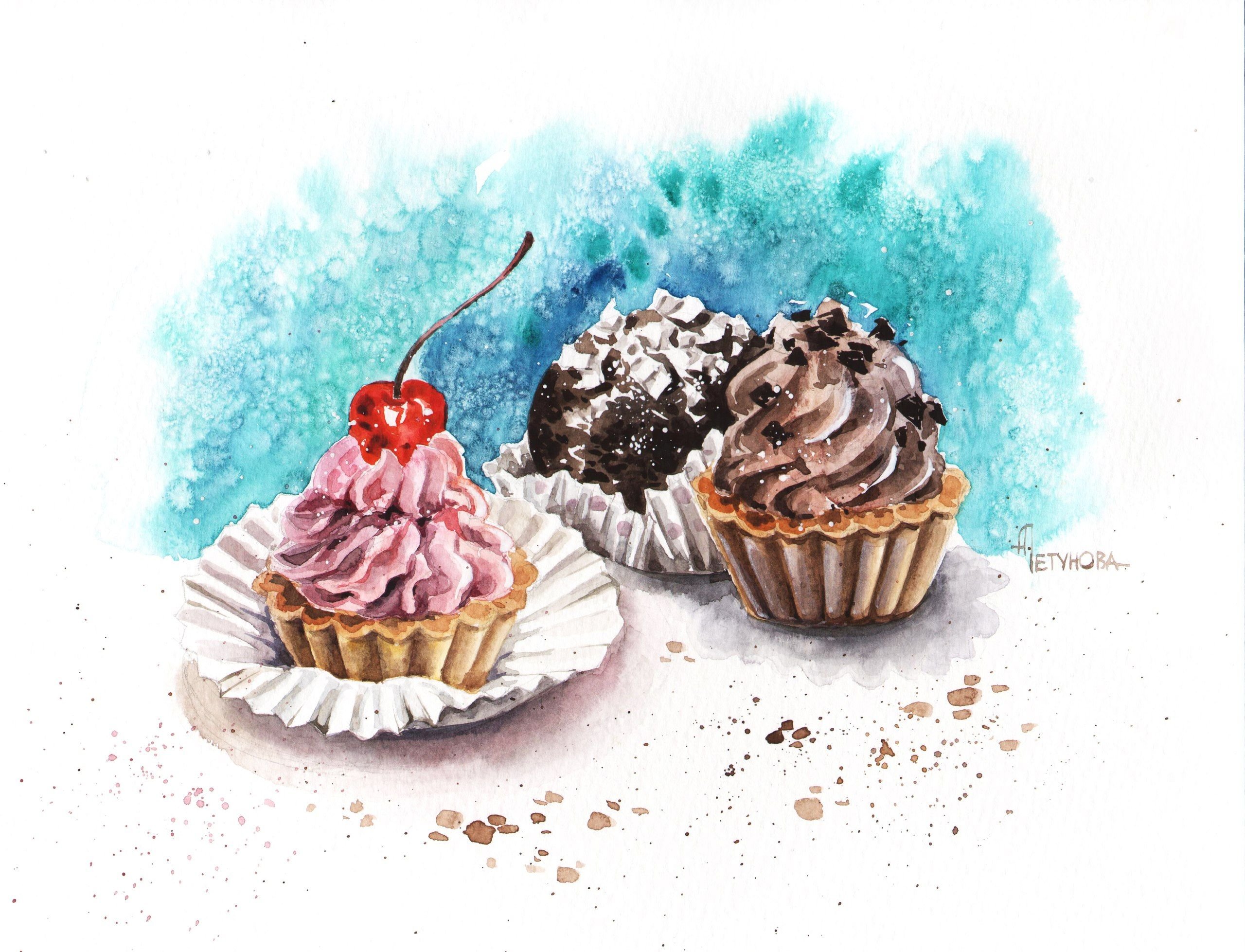 Пирожное рисунок акварелью