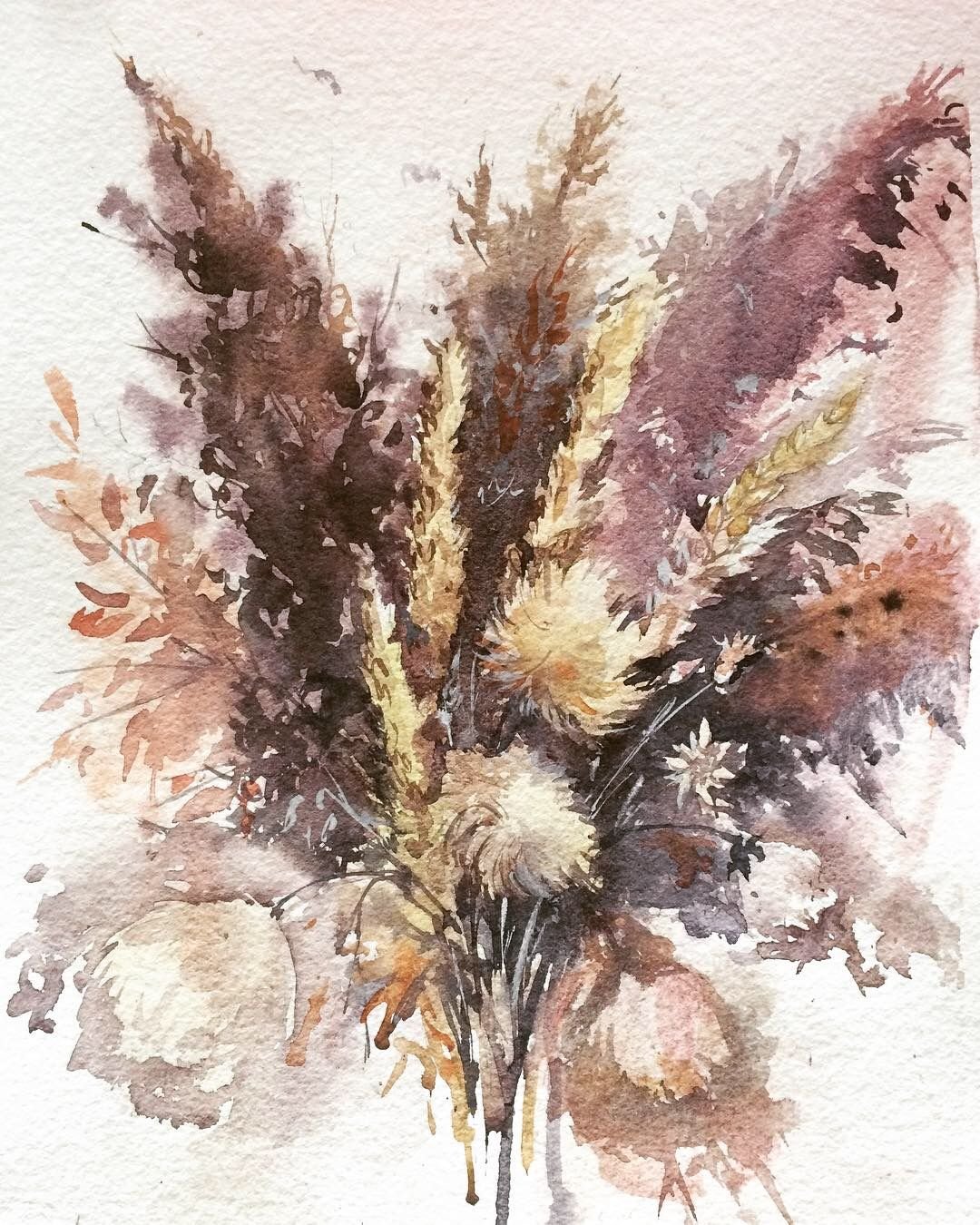 Сухоцветы акварель