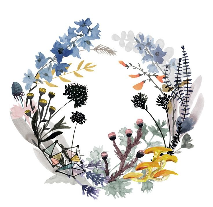 ![Травы венок акварель]()