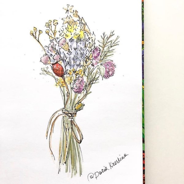 ![Цветы акварелью и ручкой]()
