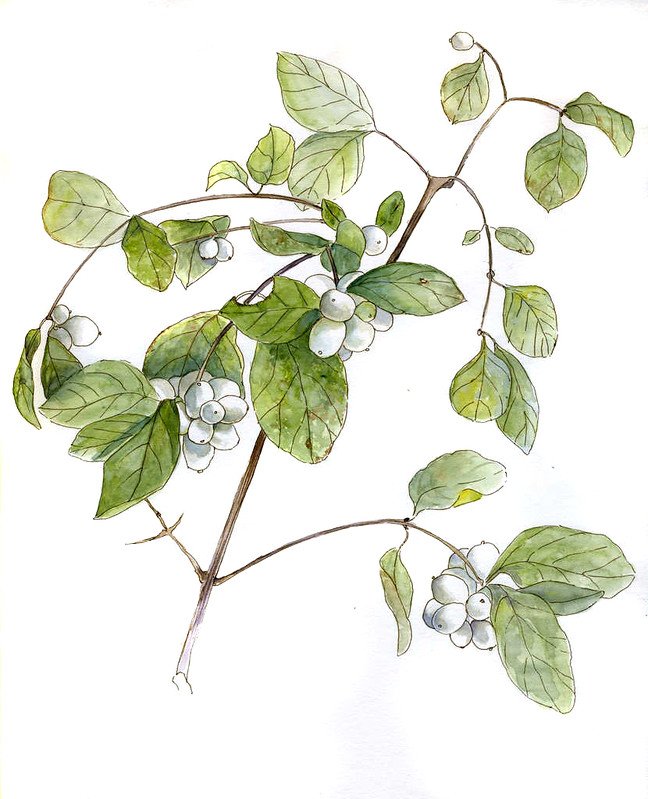 ![Снежноягодник белый Ботаническая иллюстрация]()