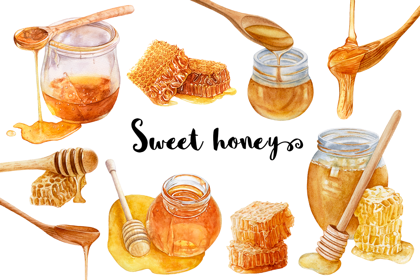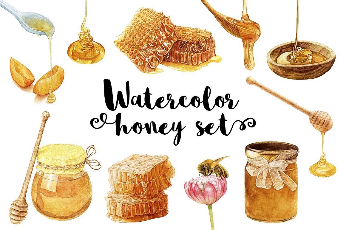 ![Акварельные зарисовки меда]()
