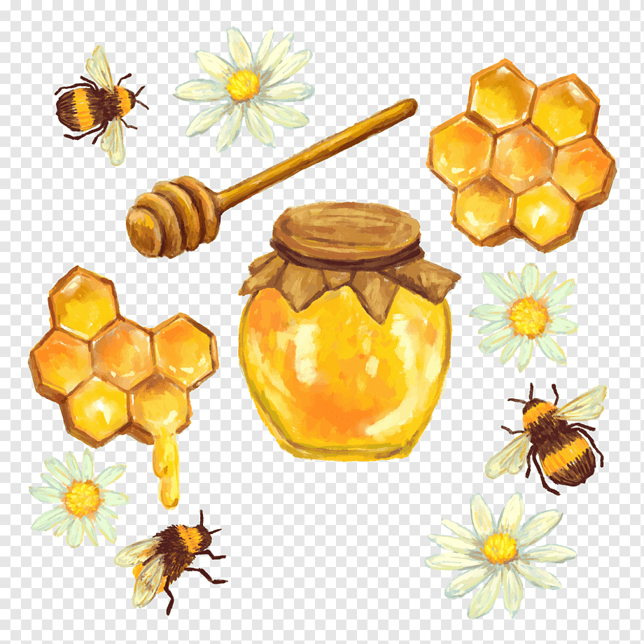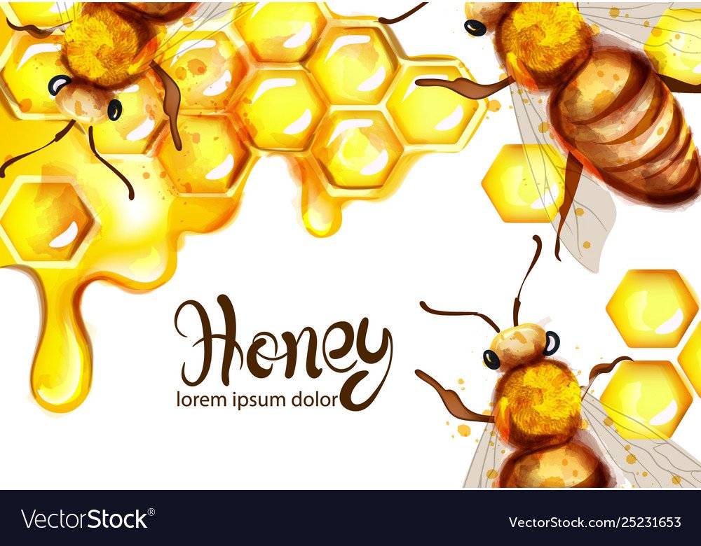 ![Мёд и пчёлы акварель]()