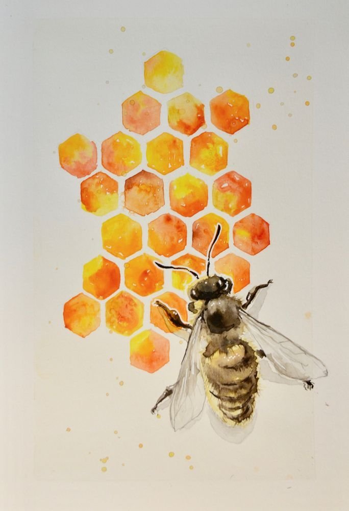 Мёд и пчёлы акварель