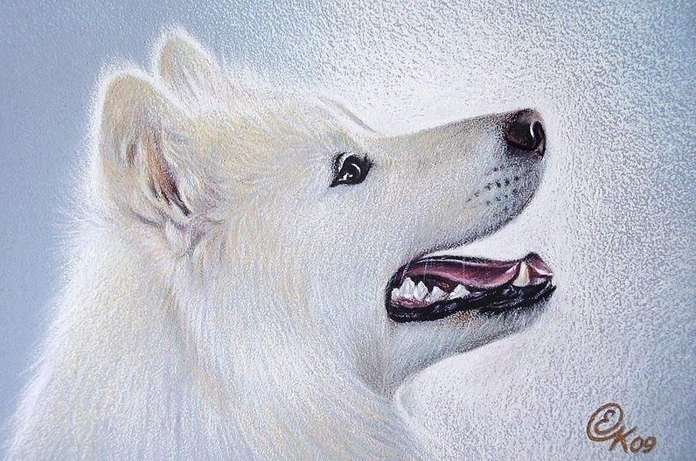 ![Лайка самоед пастелью]()