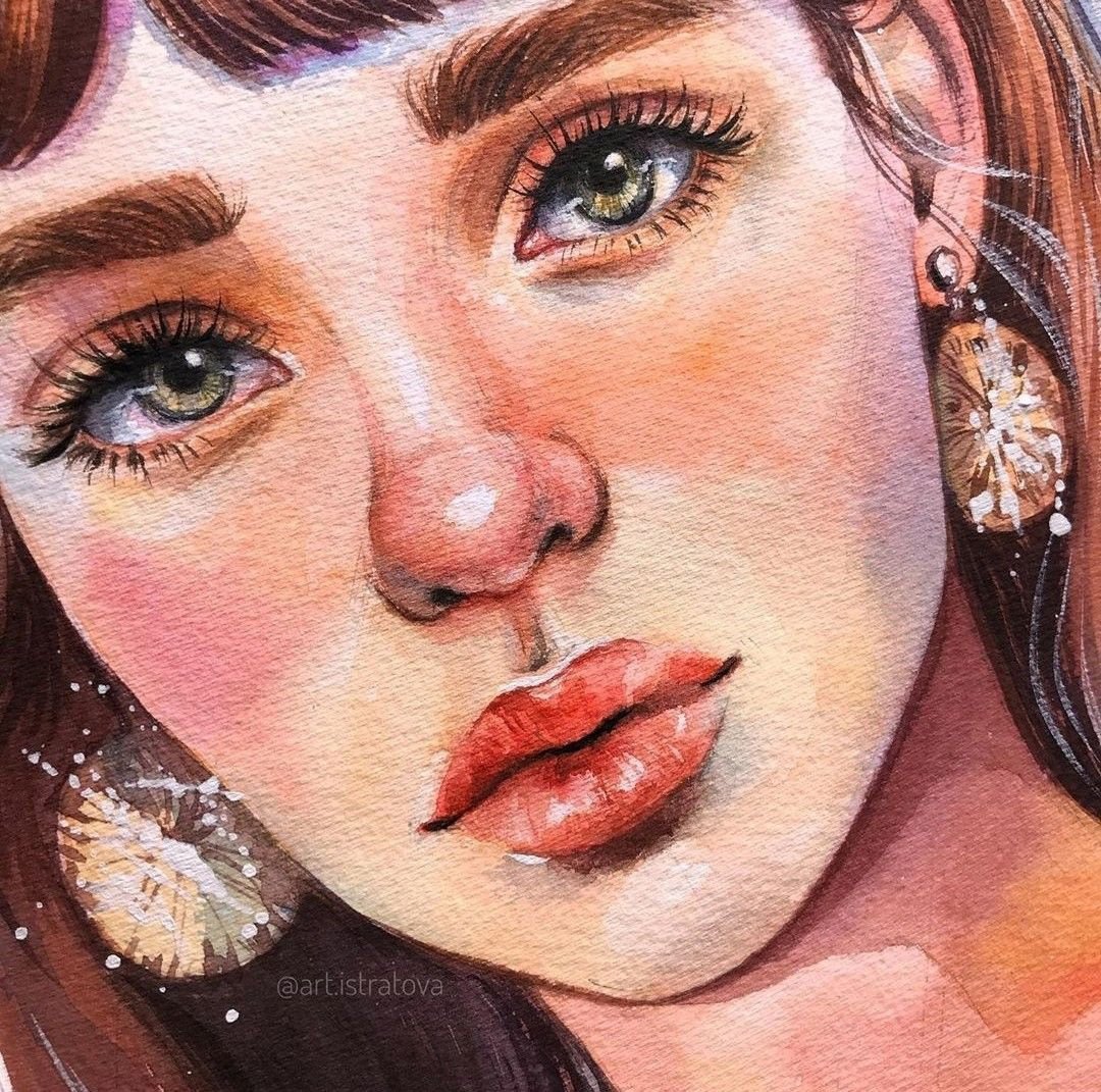 ![Лицо девушки акварелью]()