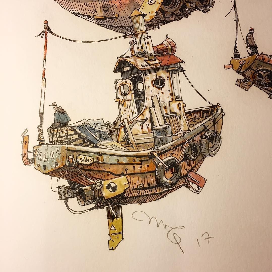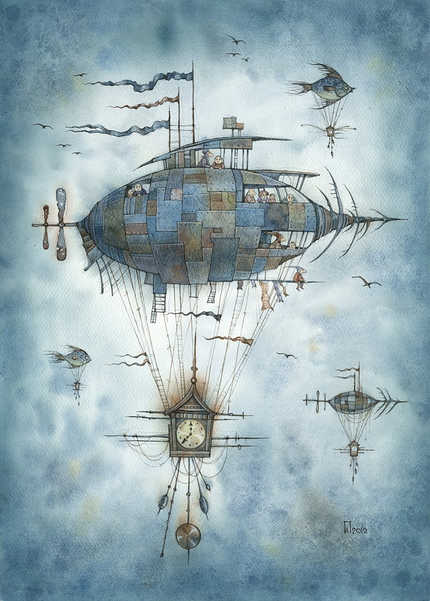 ![Стимпанк акварель Юрий Лаптев]()