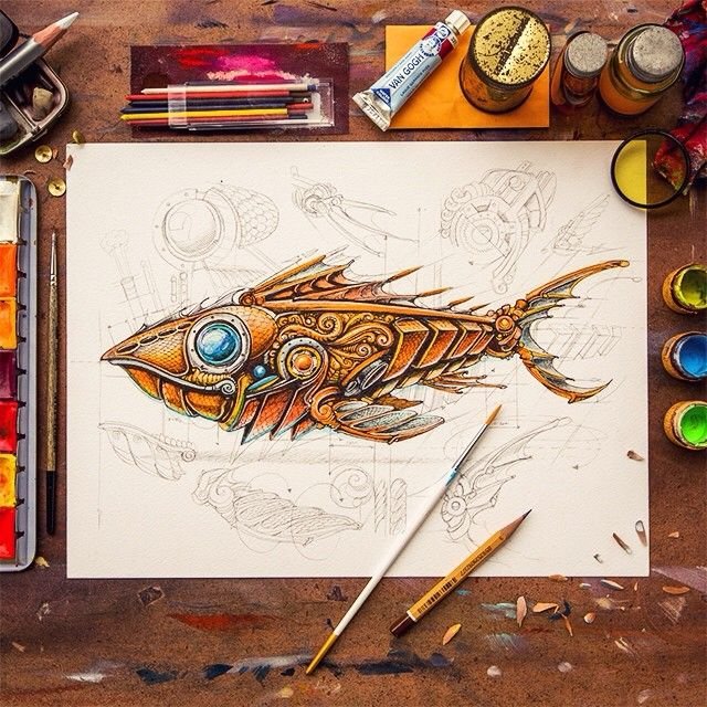 ![Владимир Гвоздев стимпанк рыбы]()