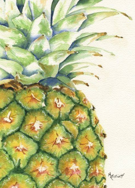 ![Этюды фруктов акварелью ананас]()