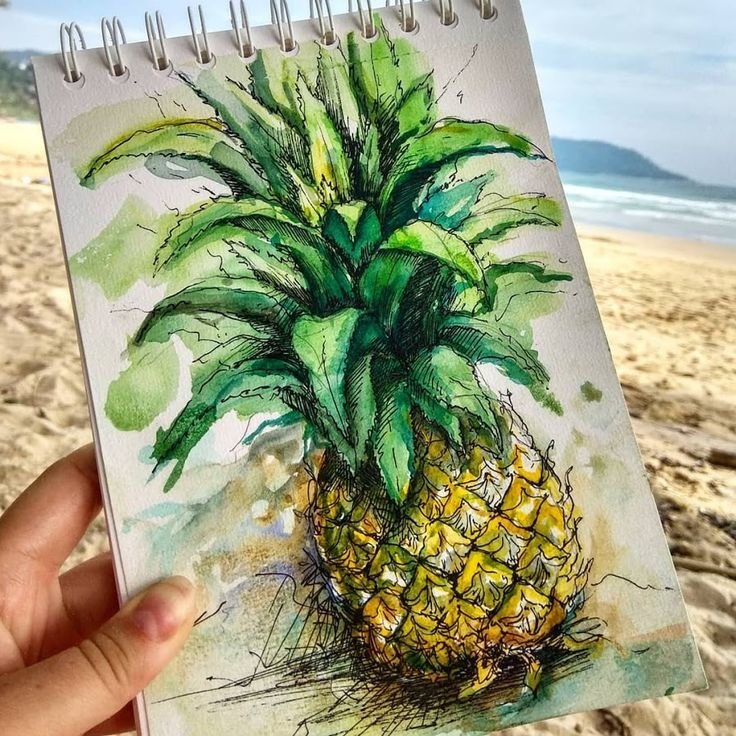 ![Ананас акварелью скетч]()