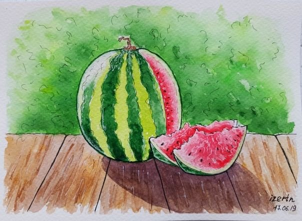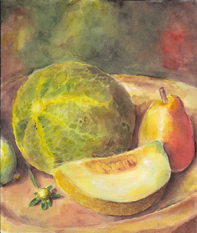 ![Натюрморт с дыней акварель]()