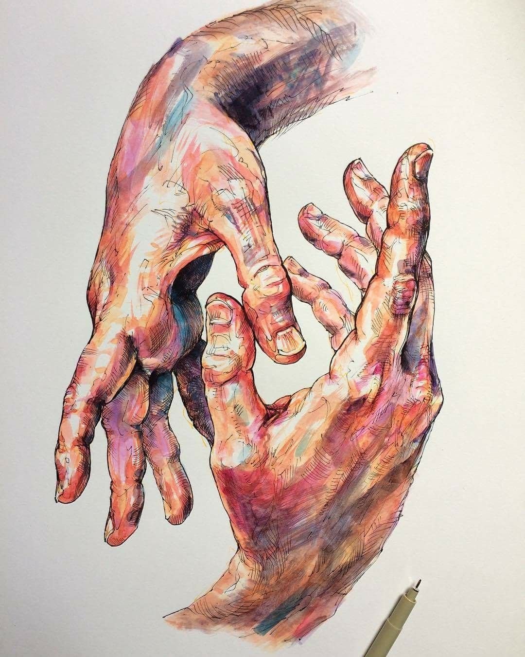 ![Рука в руке акварель]()