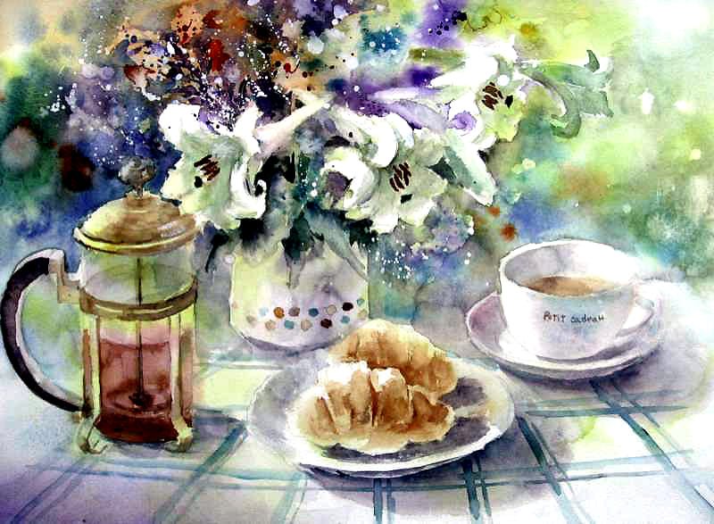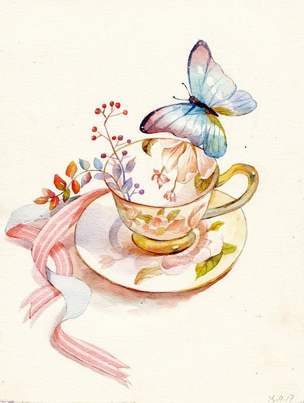 ![Чаепитие акварель]()