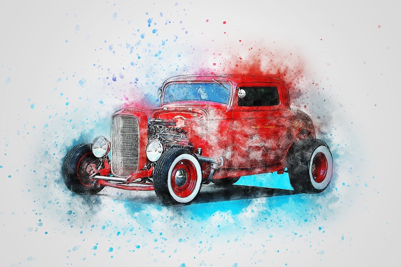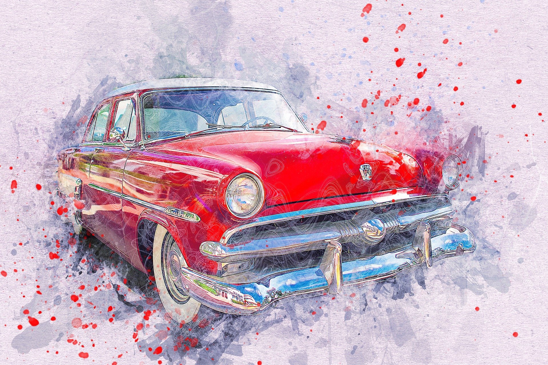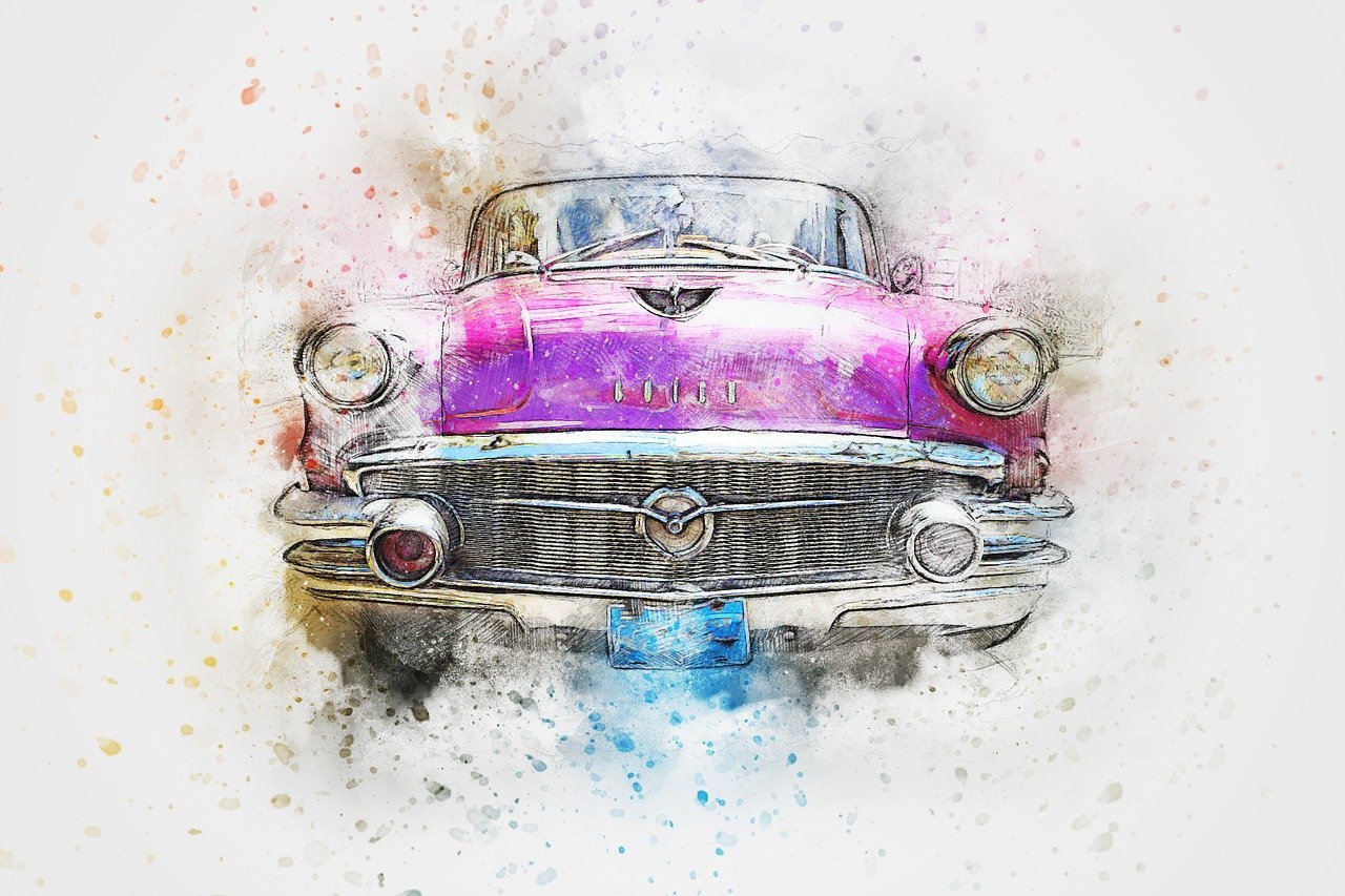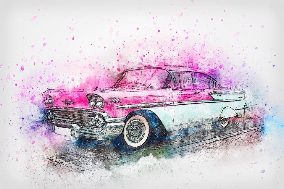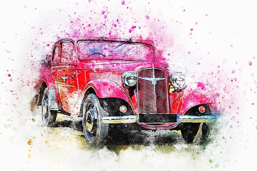 ![Ретро машина акварель]()