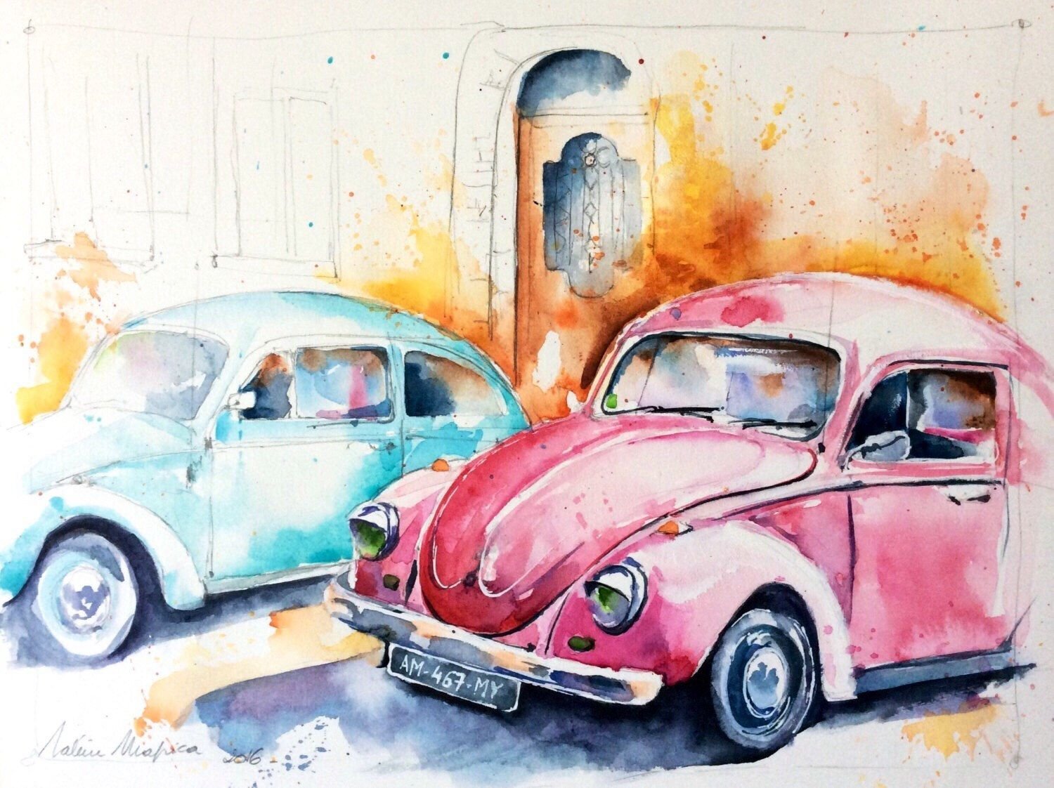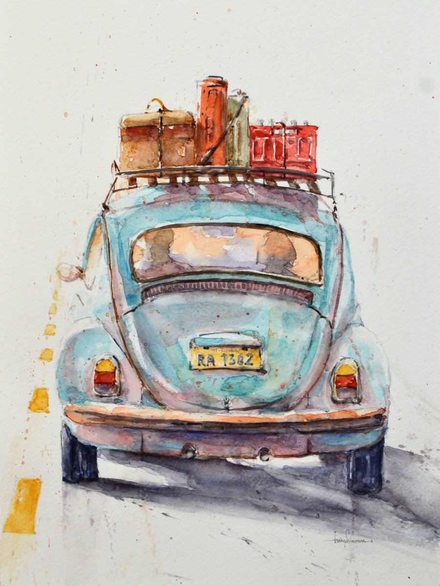 ![Фольксваген Жук акварель]()
