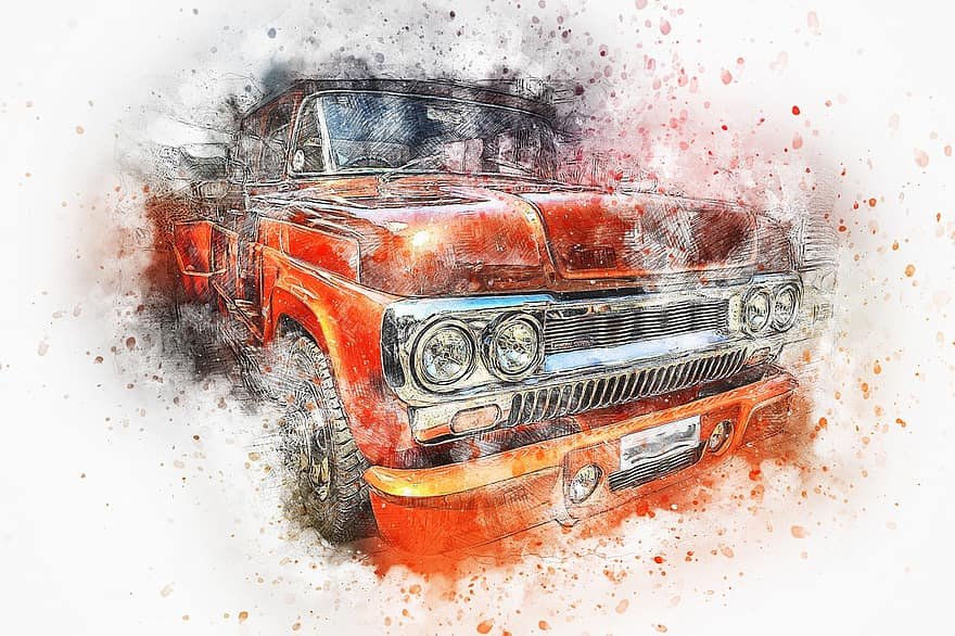 ![Ретро автомобиль акварель]()