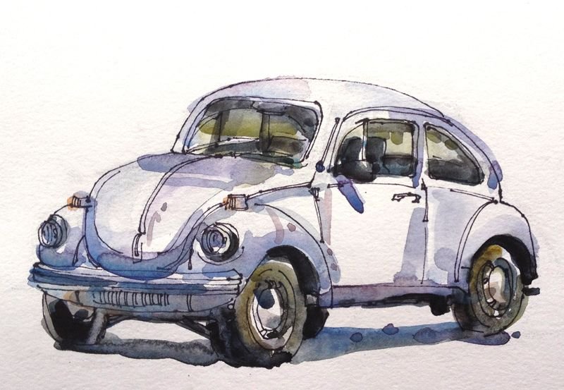 ![Скетчинг акварелью Фольксваген Жук]()