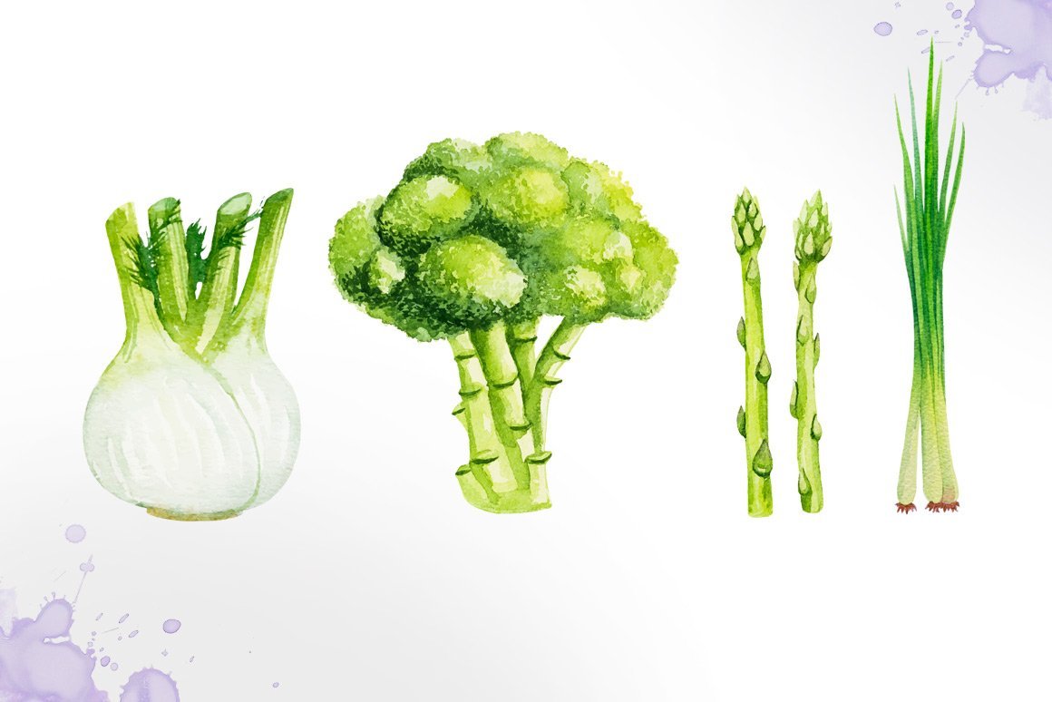 ![Зеленый лук акварель]()