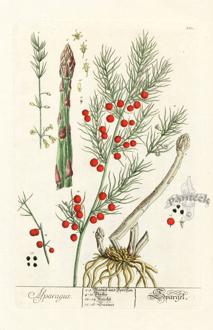 ![Аспарагус Ботаническая иллюстрация]()