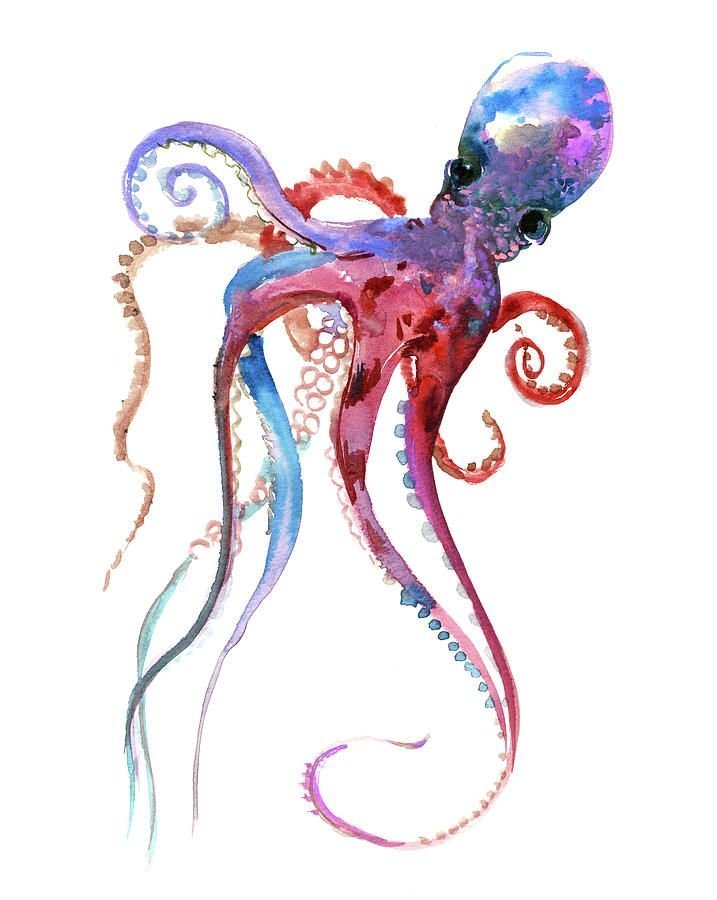 Осьминог - удивительное существо морского мира, которое вдохновляет на создание прекрасных и оригинальных рисунков акварелью. С его необычными восьмерыми щупальцами и большими глазами осьминог представляет собой интересный объект для исследования и изображения на холсте. Работа с акварелью позволяет передать всю красоту и нежность его тела, а также создать эффект прозрачности и подводного мира. Оттенки синего и зеленого, игра света и тени позволяют создать впечатляющий рисунок осьминога, который будет притягивать взгляд и поражать своей красотой. Такой рисунок станет отличным дополнением любого интерьера и привнесет в него изысканность и загадочность морского мира.