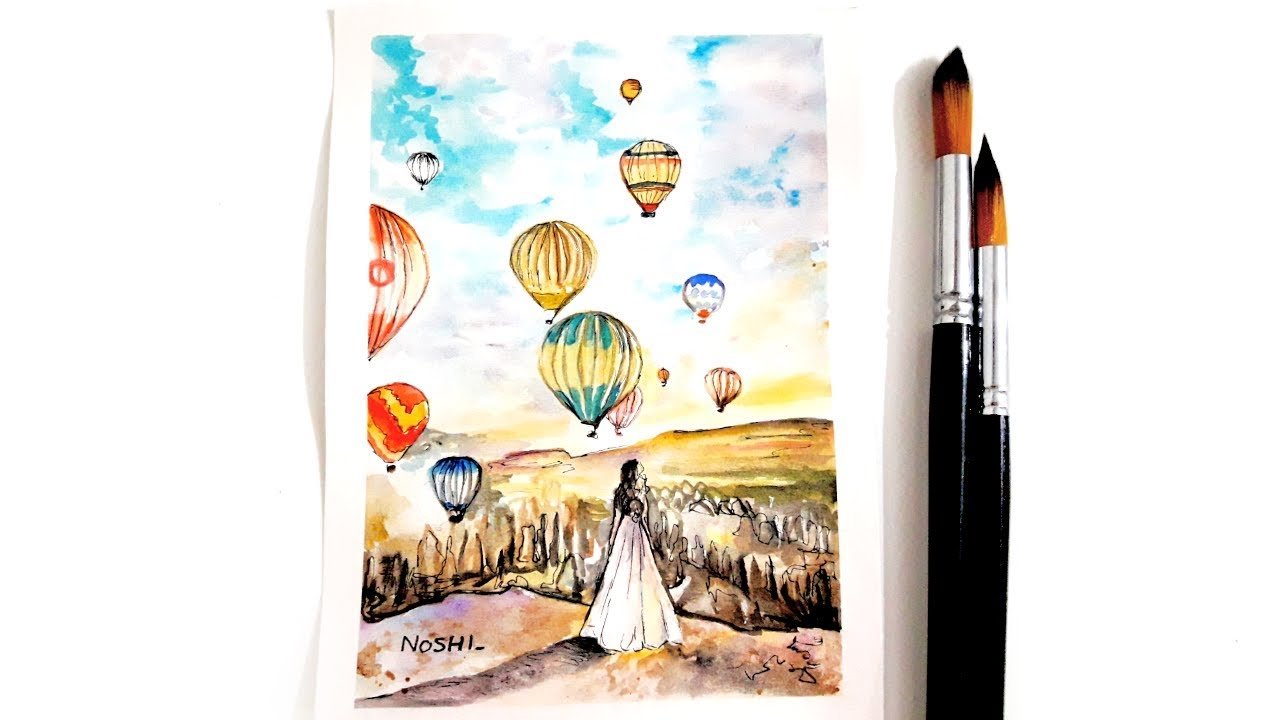 ![Каппадокия шары акварель]()